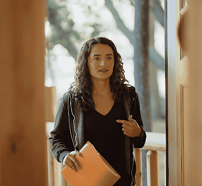 Her body language, dialogue delivery, and subtle expressions maintain the suspense of the story.